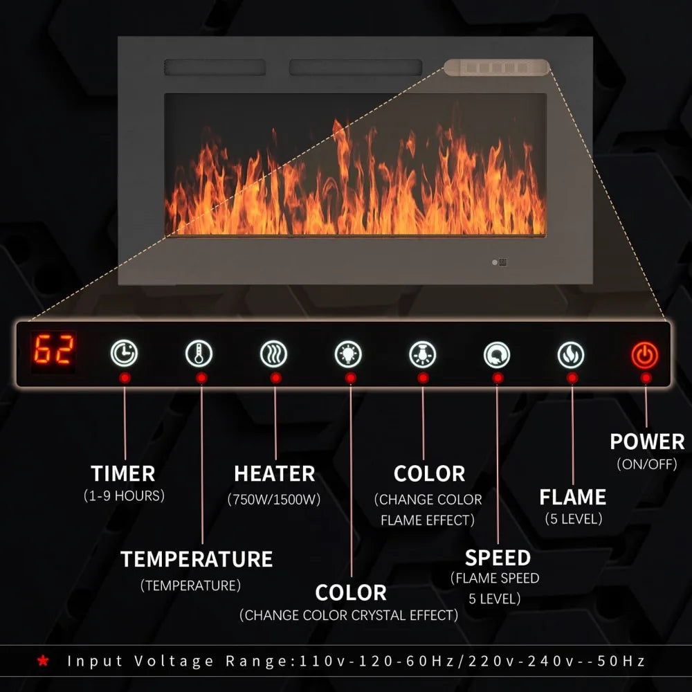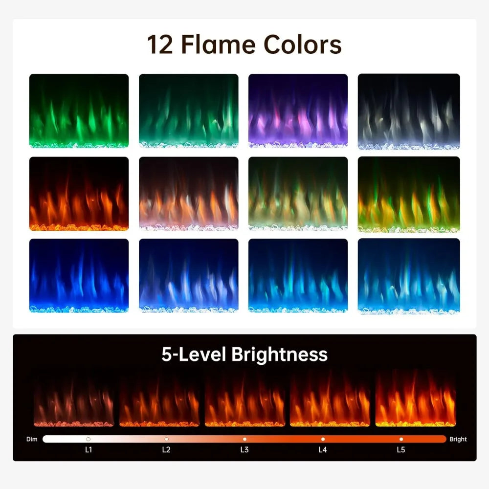 Flame Settings: 12 colors, 5 brightness levels