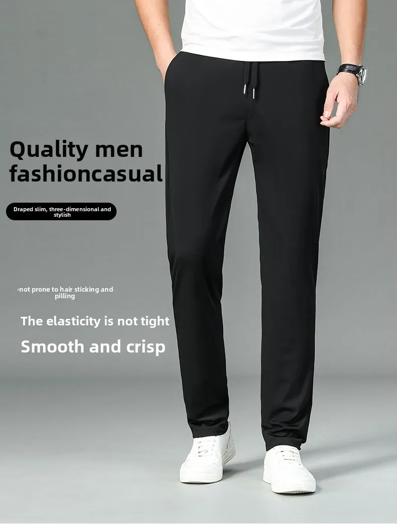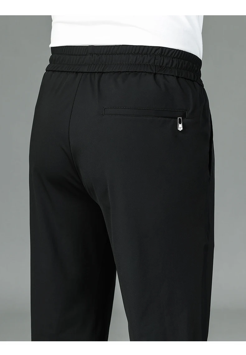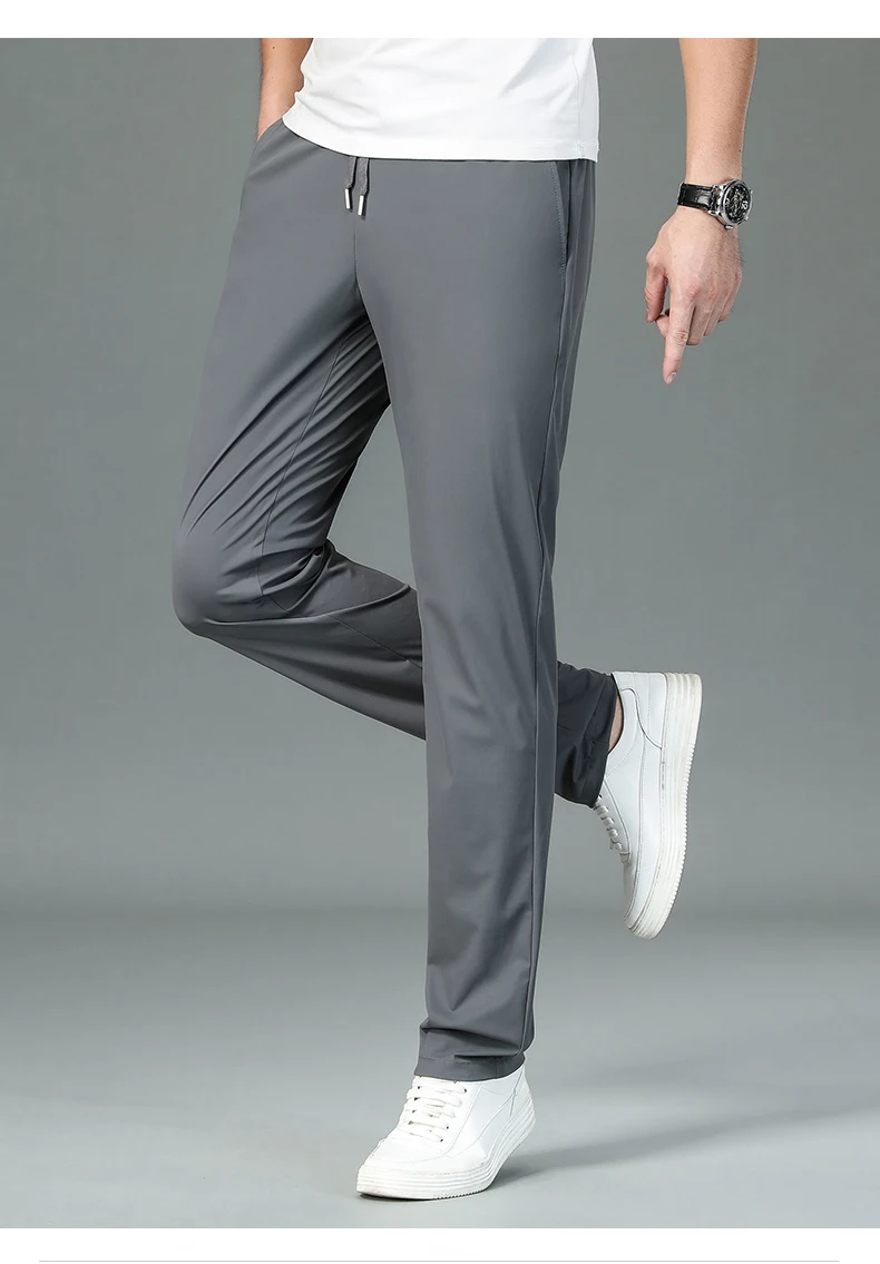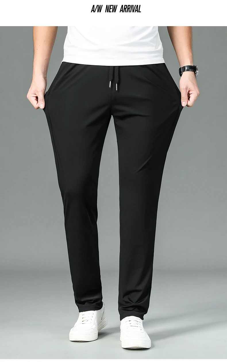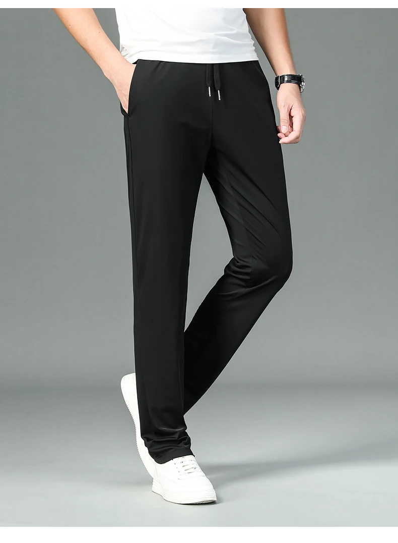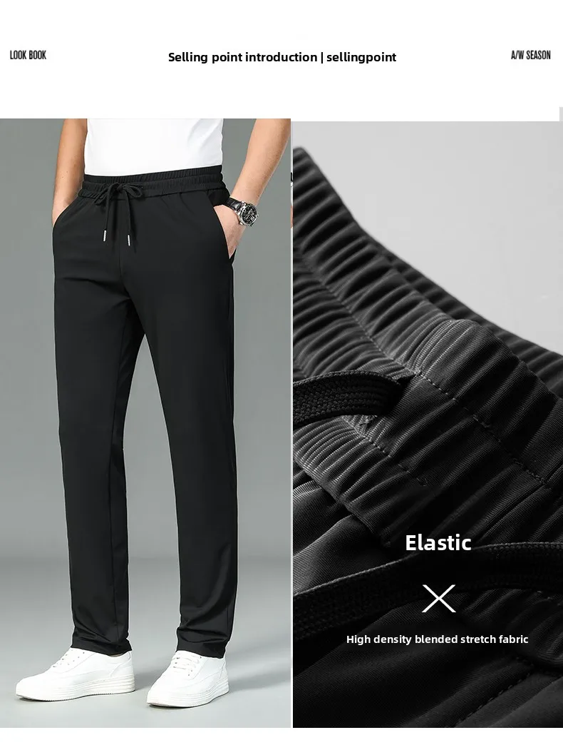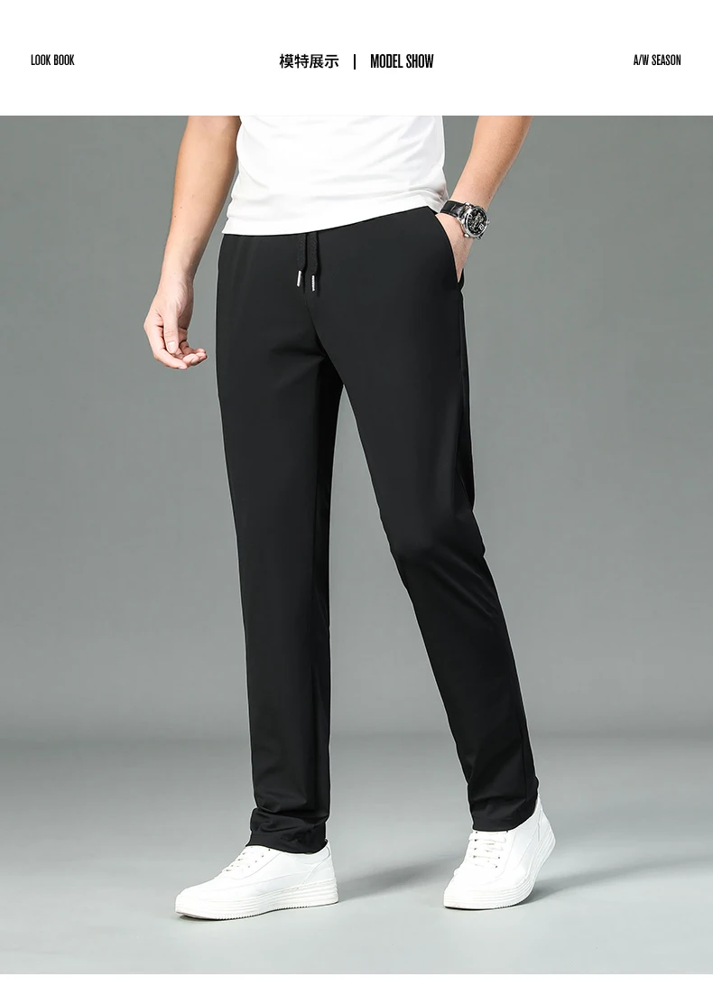 High Quality Ice Silk Stretch New Brand Casual Fashion Strappy Long Pants Elastic Pencil Street Style Teens Trousers Men Clothes