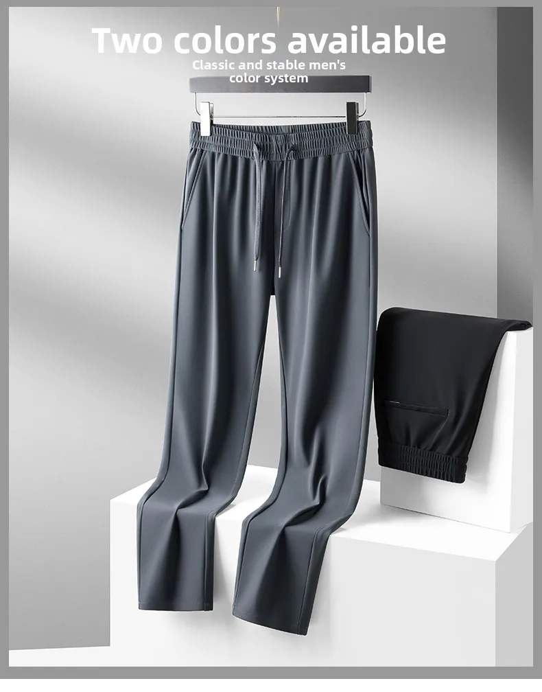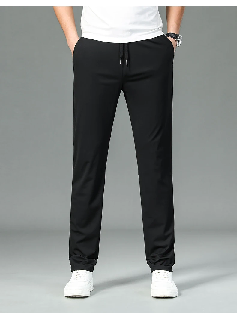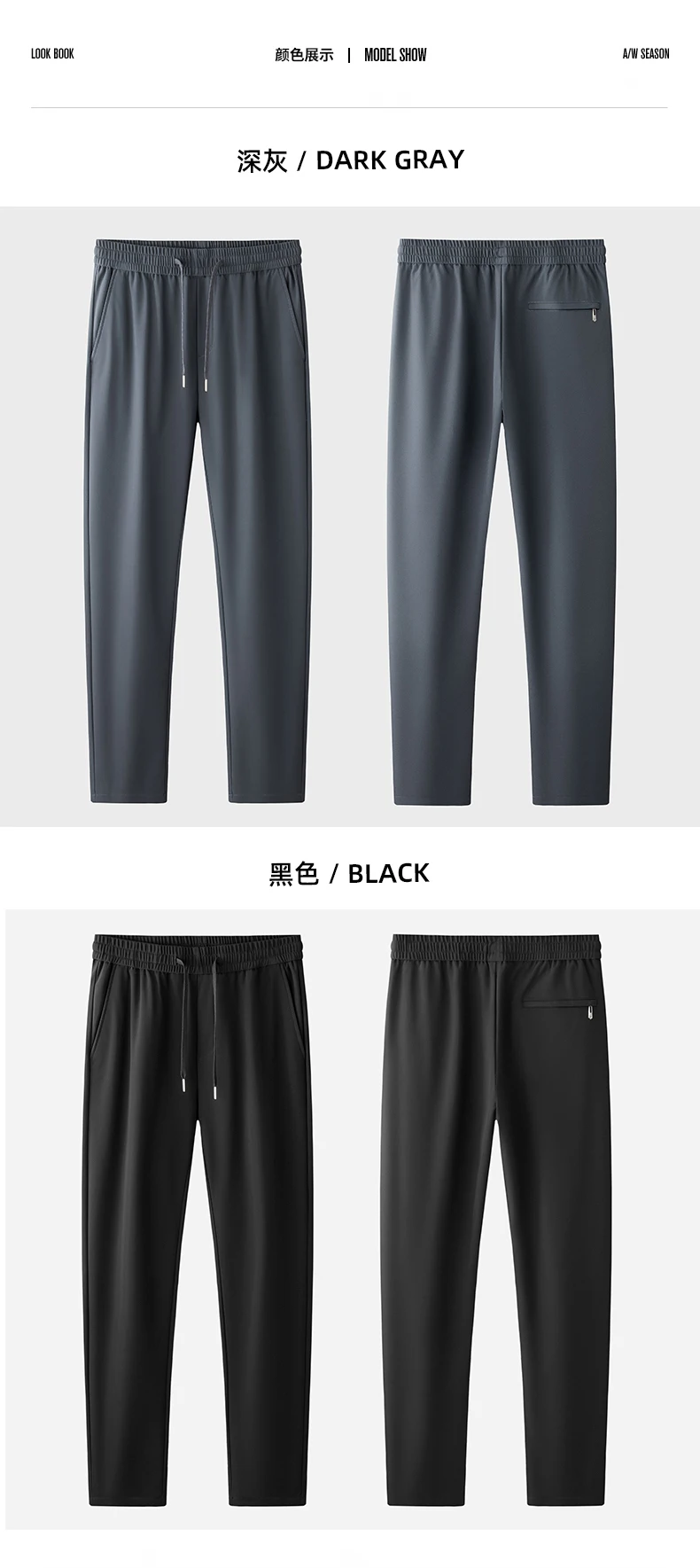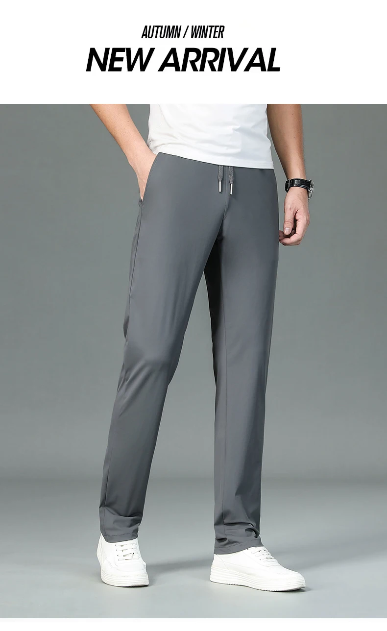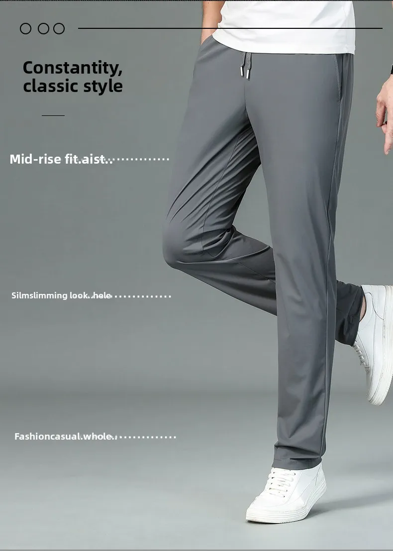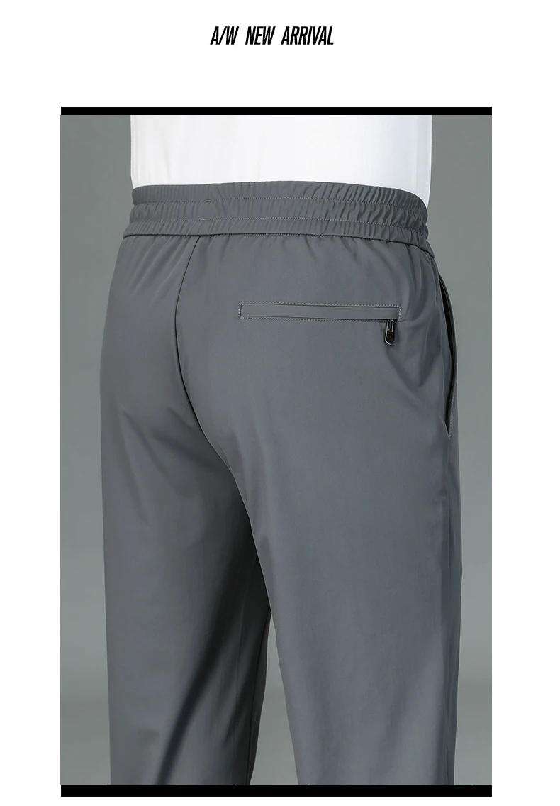 High Quality Ice Silk Stretch New Brand Casual Fashion Strappy Long Pants Elastic Pencil Street Style Teens Trousers Men Clothes