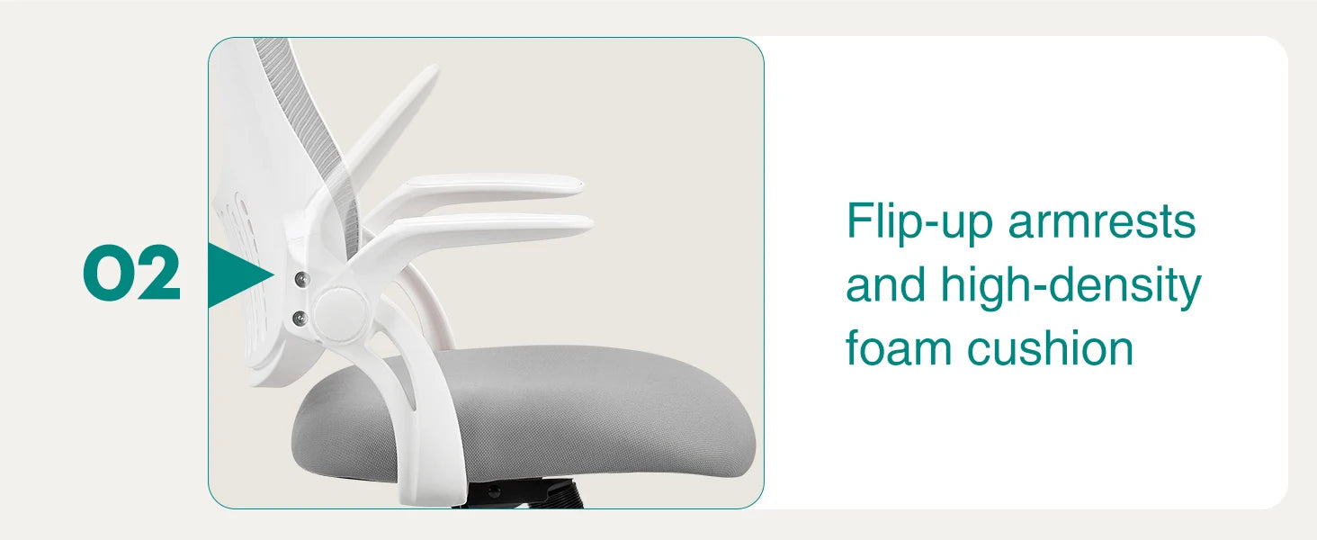 Space-Saving Arms: Flip-up design for flexible workspace setup.