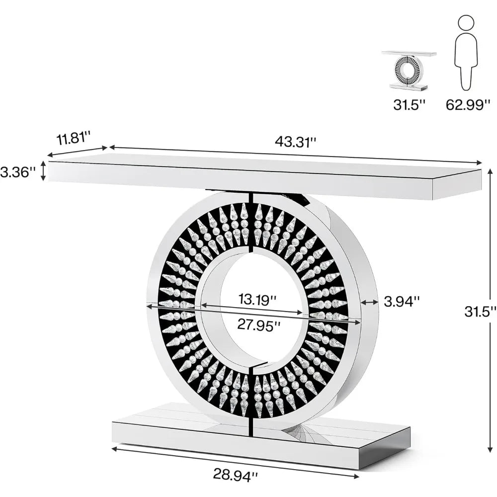 Modern Mirrored Console Table with A Sparkling Crystal-encrusted Base, 43-inch Silver Console Table/decorative Table