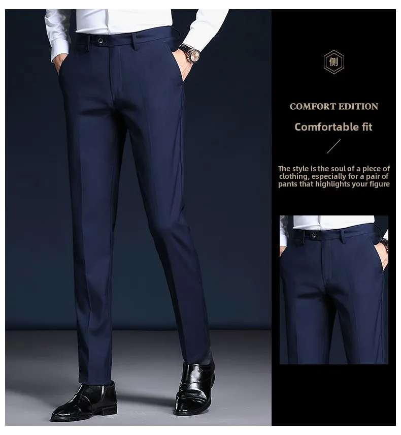 Top Grade Wrinkle Free New Brand Fashion Suit Pant Business Office Trousers For Men Dress Pants Straight Trousers Men's Clothing